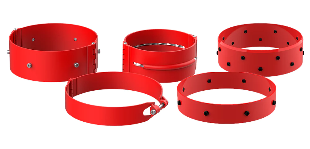 Also known as latch-on stop collars, these are two-piece devices that are hinged together. This design allows them to be latched onto the casing at any point, which is a major advantage when other tools are already on the pipe, eliminating the need to slide them from the end.